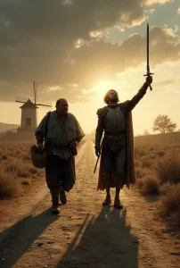 Aqui chegamos ao dilema final. Ser Sancho Pança, prudente, pragmático, confortável em sua mediocridade sensata? Ou ser Dom Quixote, delirante, derrotado, mas gloriosamente ridículo em sua fidelidade aos sonhos? Eis a questão que atravessa séculos.