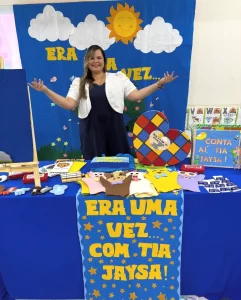 Dedicada à educação há mais de duas décadas, Jaysa Ribeiro construiu uma trajetória marcada pela paixão pelo ensino, pela leitura e pela arte de contar histórias.