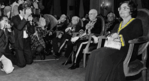 Em 4 de agosto de 1977, Rachel foi eleita para a Cadeira 5 da ABL, sendo oficialmente recebida como imortal em 4 de novembro do mesmo ano por Adonias Filho. Esse evento foi simbólico: pela primeira vez uma mulher ingressava em uma instituição tradicionalmente masculina, rompendo barreiras no mundo literário brasileiro. Sua contribuição à academia e à cultura nacional foi reconhecida com diversos prêmios, incluindo o Prêmio Camões (1993) e o Prêmio Machado de Assis entregue pela ABL.