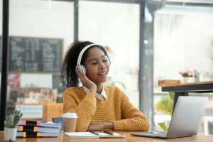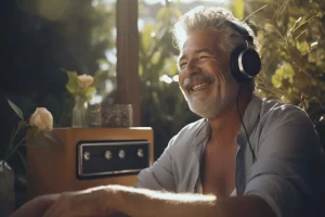 Está um algo maravilhoso, pode ser por aplicativo em seu celular, pela internet, pode ser videoclipe, ou mesmo selecionar uma estação de rádio de sua preferência. Escolha músicas que te tocam para se inspirar e se sentir apto a criar mundos fantásticos.